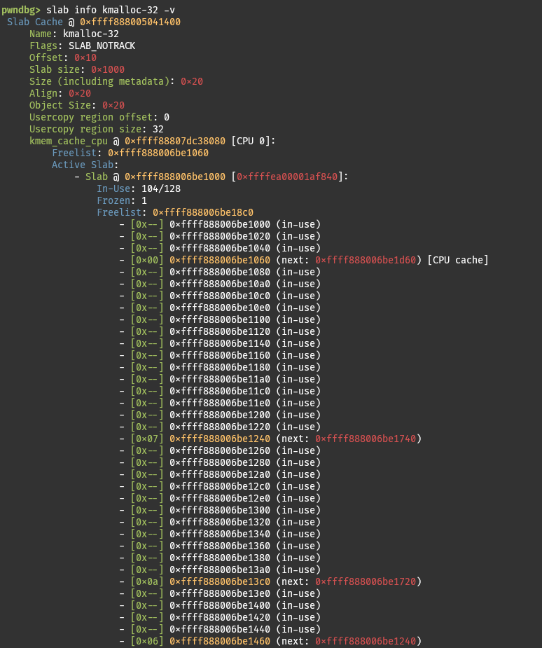 It is thus absolutely necessary to have a function which robustly retrieves the version of the allocator. For the kernel SLUB allocator, this is pwndbg.aglib.kernel.kversion() and .krelease(), for the other ones this is pwndbg.libc.version().